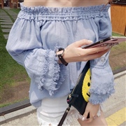 一字領露肩喇叭袖襯衫 [上衣]