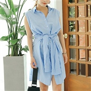 排扣條紋開叉襯衫連身裙 [連身裙]