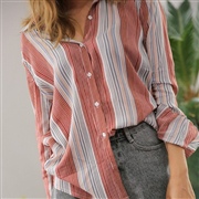 長袖豎條紋襯衫 [上衣] [襯衫] #1-紅色 #...