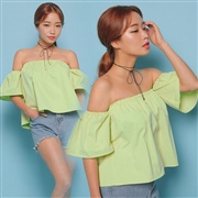小性感一字領短袖露肩襯衫 [上衣] #1-白色 #...