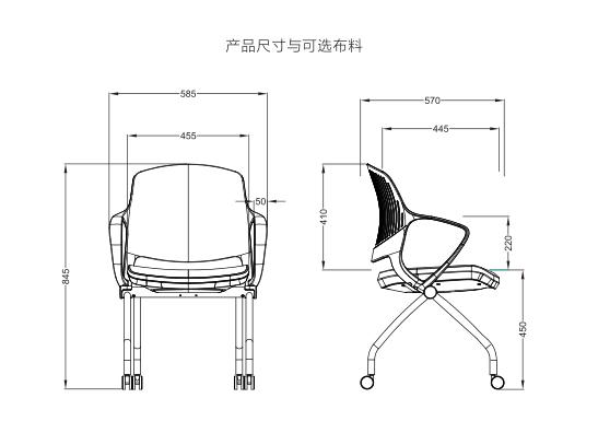 背高: 410mm 背闊: 455mm 座深: 455mm 座闊: 455mm 連扶手闊: 585mm 座面離地高: 450