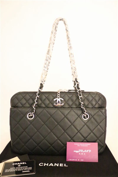 CHANEL A49274 黑色牛皮 銀鏈 配CC Logo 吊飾 肩背袋 手提袋 手袋