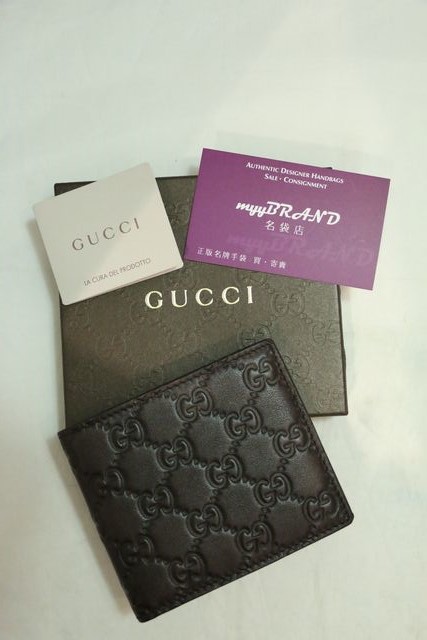 (SOLD)GUCCI 145754 啡色 壓紋 GG Logo 銀包 短錢包