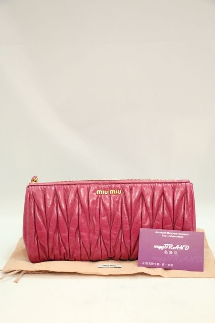 (SOLD) MIU MIU 5M0506 MATELASSE 玫瑰粉紅色 皺褶 U型拉鏈 長錢包 銀包
