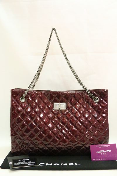 (SOLD) CHANEL 酒紅色 漆皮 菱格紋 方扣 銀鏈 肩背袋 手袋