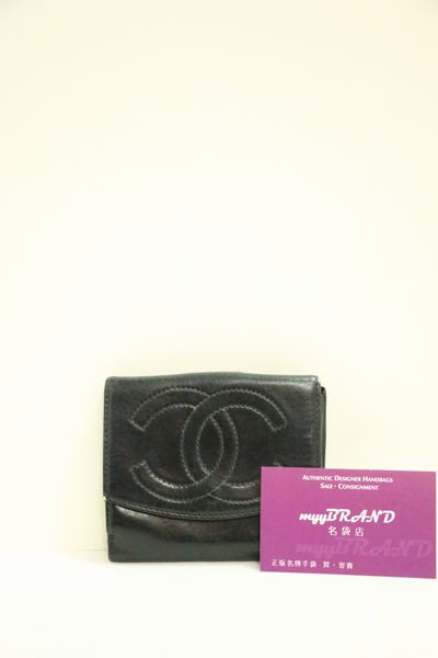 (SOLD)CHANEL VINTAGE 黑色 羊皮 車線 CC Logo 短銀包 錢包