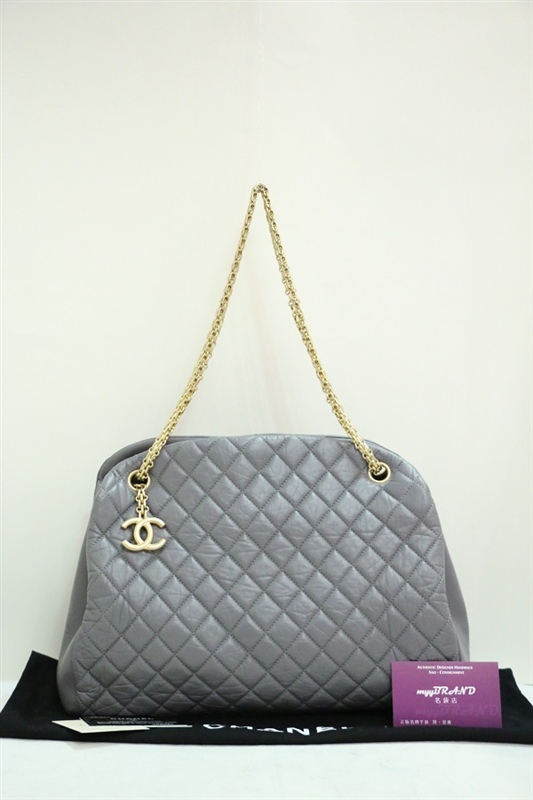 (SOLD) CHANEL Mademoiselle 灰色 牛皮 菱格 金鏈 配CC Logo 手提袋 肩背袋 手袋