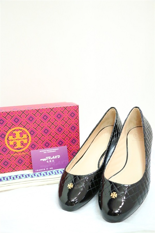(SOLD)TORY BURCH 黑色 漆皮 牛皮 菱格 芭蕾舞鞋 平底鞋