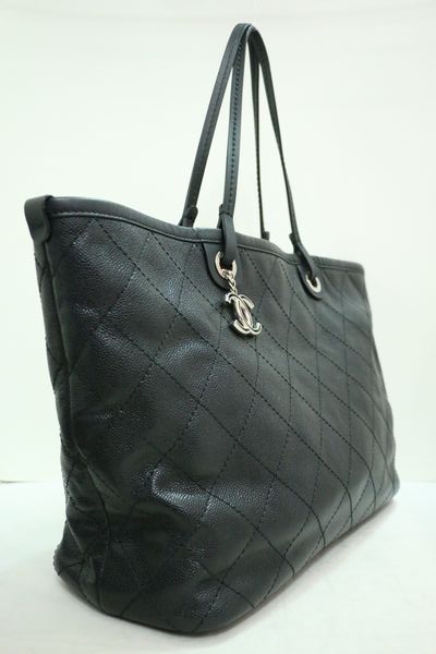 (SOLD)CHANEL A34210 Classic Tote 黑色 牛皮 帆布 菱格 銀色 CC Logo 肩背袋 手提袋 手袋