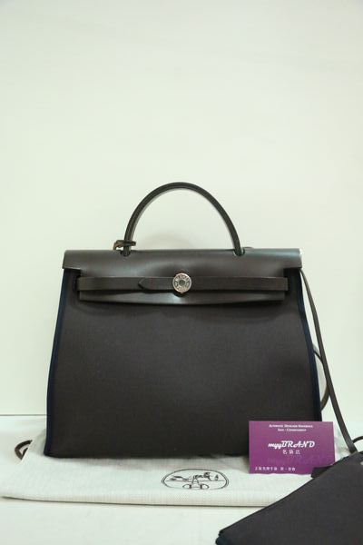 (SOLD)HERMES Herbag 31 黑色 皮革 啡色 帆布 肩背袋 手挽袋 手袋