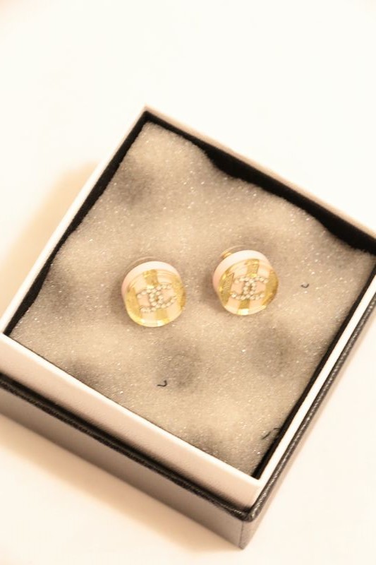 (SOLD)CHANEL A61356 淺金色 蝴蝶結 圓形 吊飾 耳環