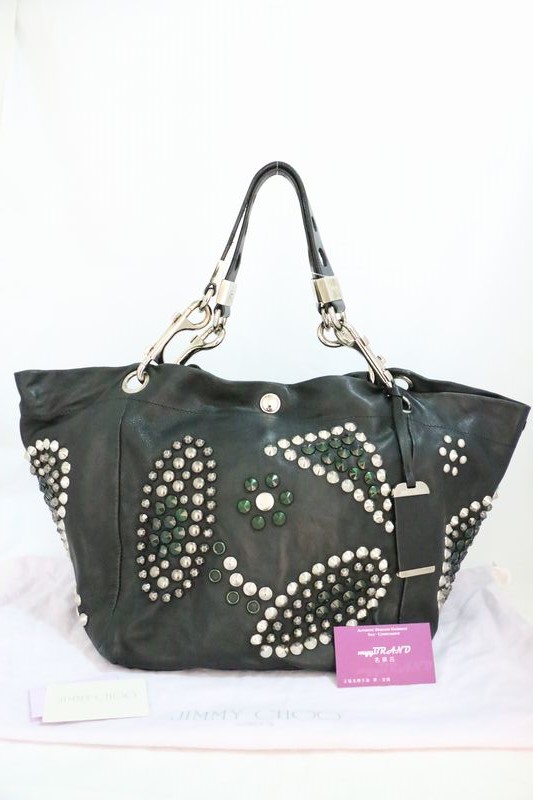 (SOLD)90% New Jimmy Choo 黑色 窩釘 皮革 手提袋 肩背袋 手袋