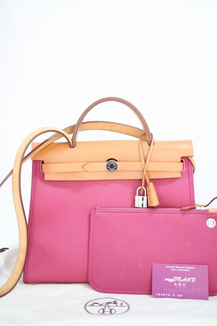 (已售)HERMES Herbag 31 Tosca 紫紅色 帆布 皮革 手提袋 肩背袋 手袋 手挽袋