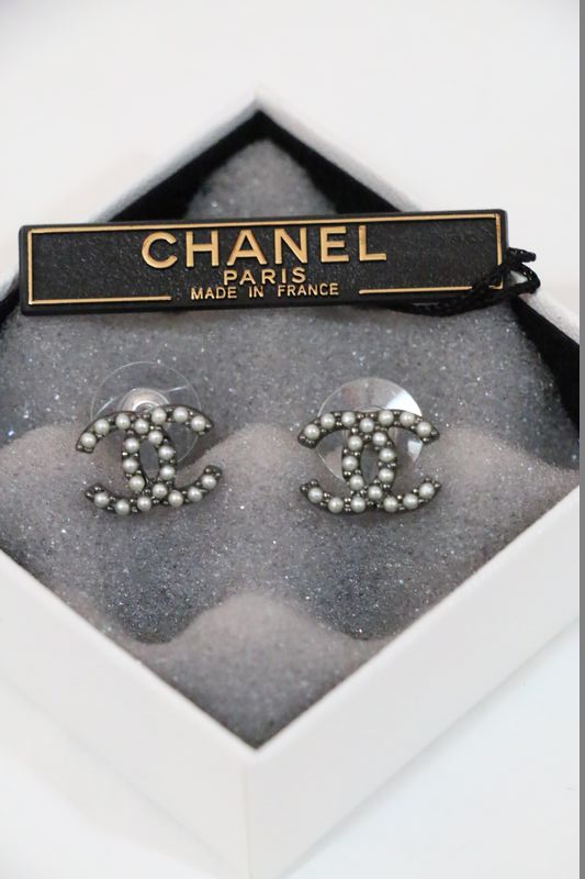(SOLD) CHANEL A63834 淺金色CC Logo 珍珠 耳環