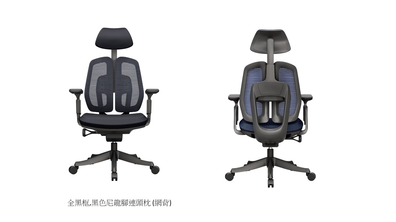 新款人體工學 椅,雙扇葉背設計,可上 下調節,配合不同人體脊椎,