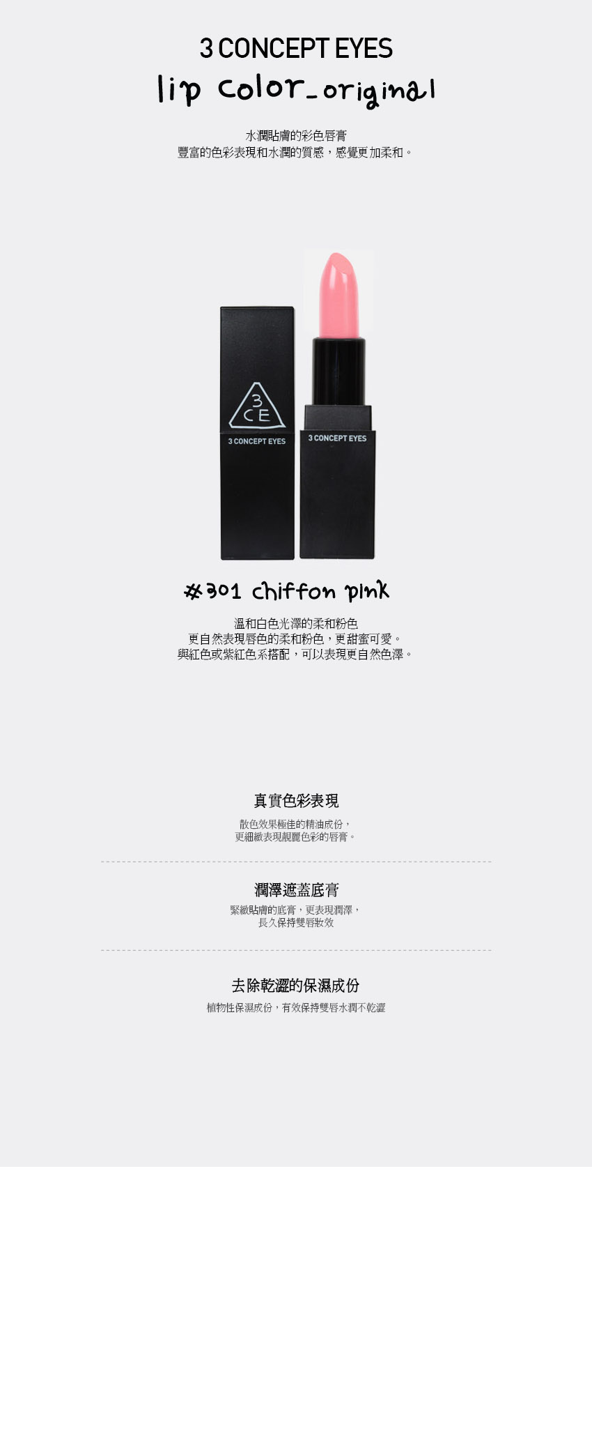 韓國 3CE (3 Concept Eyes) 滋潤顯色唇膏 ( 草莓粉色 ) LIP COLOR(203-BABY R...