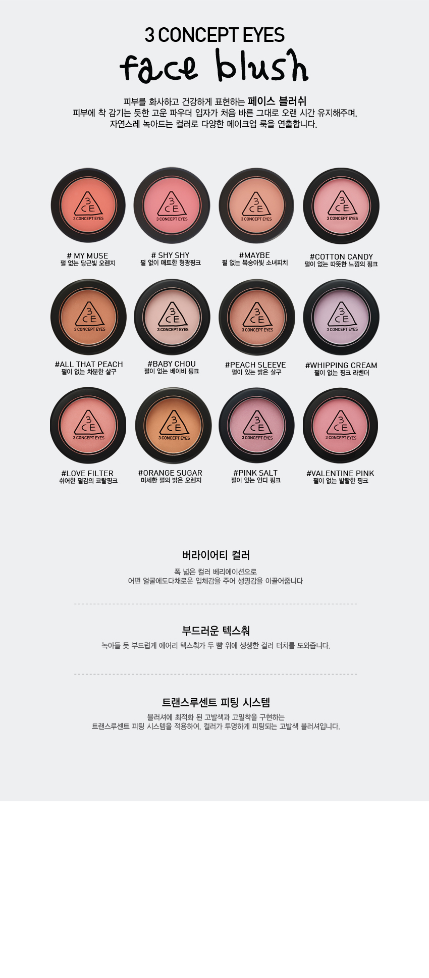 韓國 3CE (3 Concept Eyes) 持久粉嫩胭脂 (淡粉紅色) #VALENTINE PINK