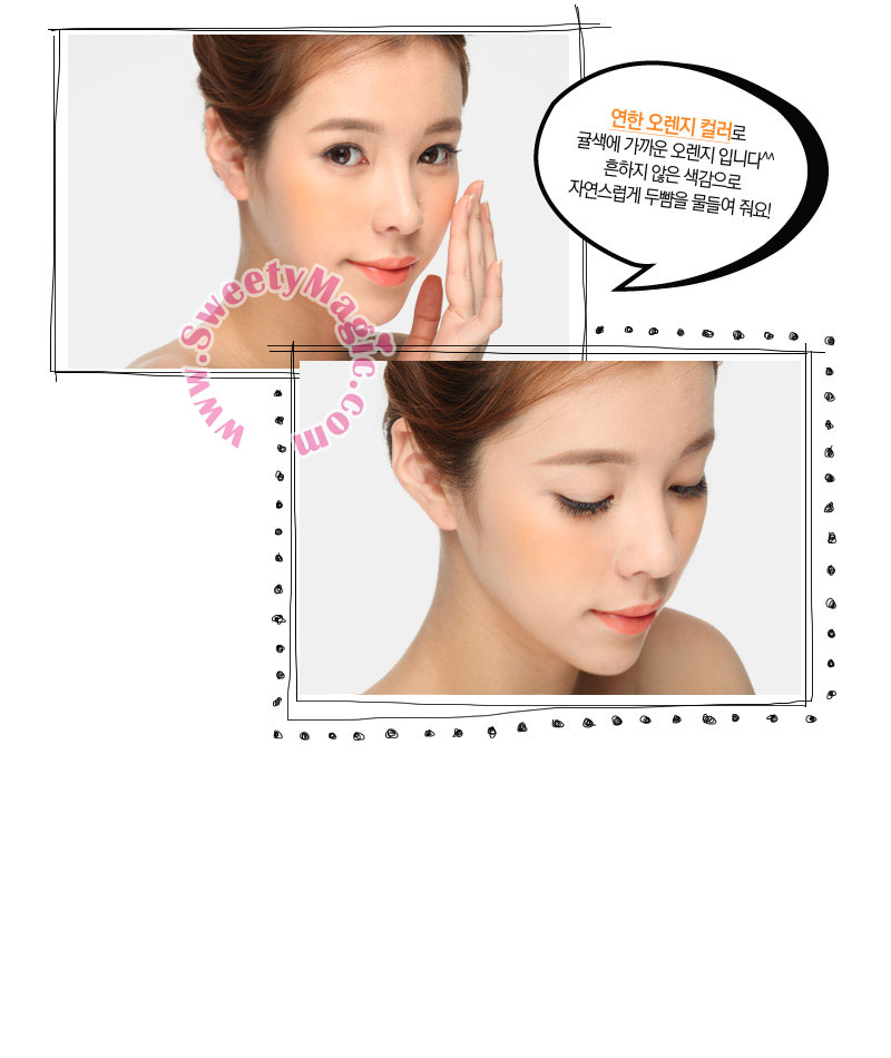精緻你的妝容,讓美麗與你同行,這款甜美橙色腮紅,讓你的兩頰更加立體! 水分瑩潤,使肌膚更自然,更生動、橙色系列,給整體妝面帶來暖色調, 單獨使用映襯甜美糖果色, 與其他平淡色彩搭配,起到提亮效果。