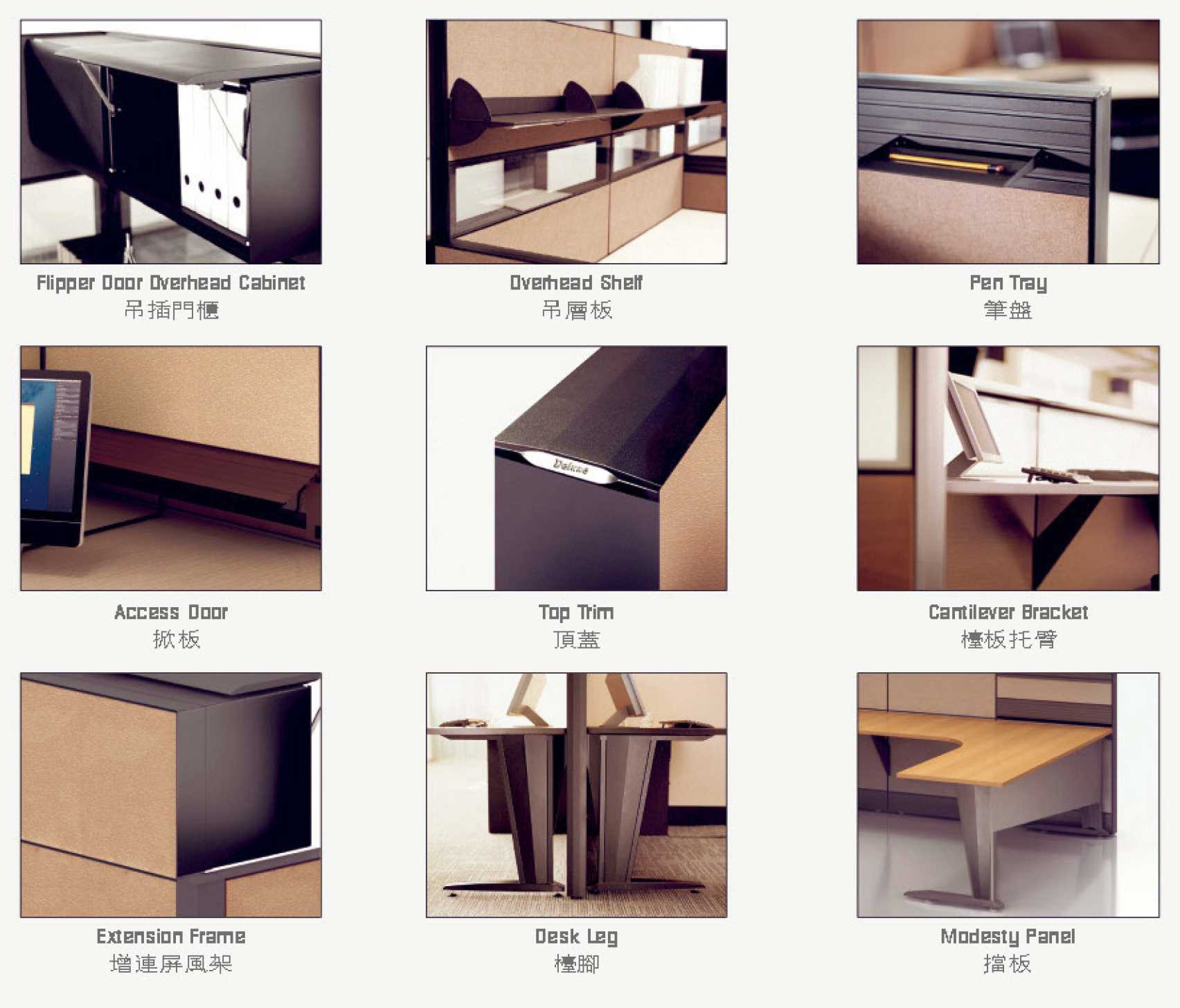 4. 屏風的表面材料有:布料、MFC 木紋色貼面板(木板)、清玻璃、