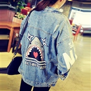 寬鬆蝙蝠袖印花鯊魚長袖牛仔外套 [外套] [牛仔褸]