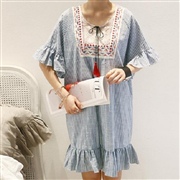 條紋綁帶兩穿襯衫連身裙 [連身裙]