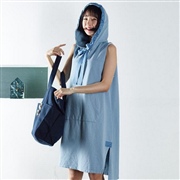 連帽寬鬆無袖衛衣 [連身裙] #1-粉紅色 #2-藍色