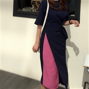 豎條紋拼接不規則魚尾裙 [連身裙]