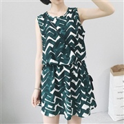條紋鬆緊收腰無袖連身裙 [連身裙]