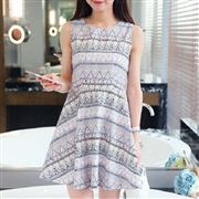 無袖幾何蓬蓬裙背心連身裙 [連身裙] #1-白底藍 #2-藍底粉