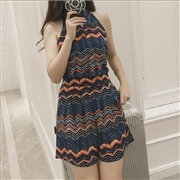 波浪花紋雪紡背心+高腰短褲 [套裝] #1-灰色 #2-綠色