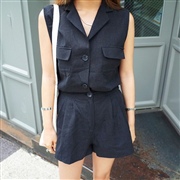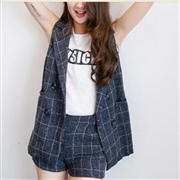 中長款薄款馬甲搭配短褲套裝 [背心.馬甲] #1-黑色 #2-湖藍色