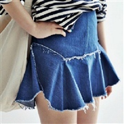 隨意流蘇不規則荷葉邊拉鍊魚尾牛仔短裙 [半身裙]