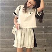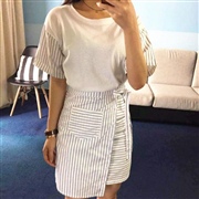 寬鬆拼接袖條紋上衣+綁帶半身裙 [套裝]