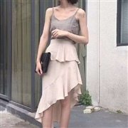 吊帶背心背心+氣質不規則波浪邊半身裙 [套裝]