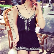 民族特色刺繡吊帶背心式連體短褲 [連身褲] #1-黑色 #2-白色