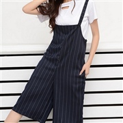 顯瘦條紋背帶哈倫褲 [連身褲] #1-條紋 #2-黑色