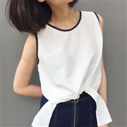 無袖領口包邊打結背心 [背心.馬甲] #1-白色 #2-杏色