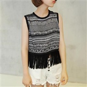 修身鏤空蕾絲勾花無袖短款露臍高腰背心上衣 [背心.馬甲] #1-白色 #2-黑色