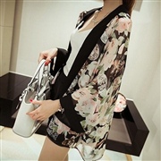 寬鬆喇叭袖雪紡外套 [外套] #1-花朵 #2-樹影
