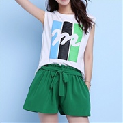 無袖字母襯衫+顯瘦短褲兩件套 [套裝]