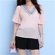 簡約薄款雪紡上衣+短褲套裝 [套裝]