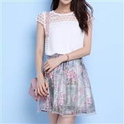 鏤空蕾絲雪紡上衣印花網紗字裙兩件套 [套裝]