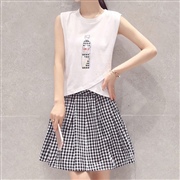 印花不對稱上衣+格子短裙兩件套 [套裝]